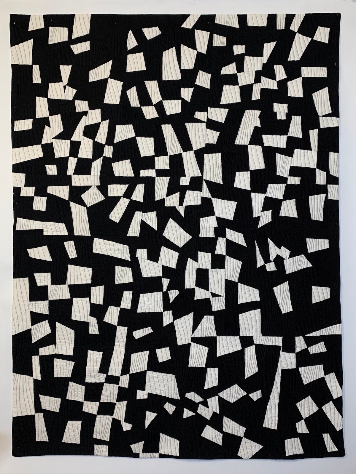 Pieced in a random design from black and pearl colored kimono silks this one of a kind throw would be a perfect addition for the end of your bed, over a chair or ottoman. Just the right size to wrap around your shoulders or curl up under on a cool afternoon or evening.