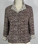 Garment measures 44 inches bust, 46 inches hips, length at center back 23 inches. Size medium. [Approximate industry size 14-16.]