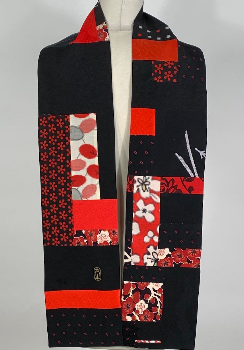 Pieced, vintage, Japanese kimono silk scarf.