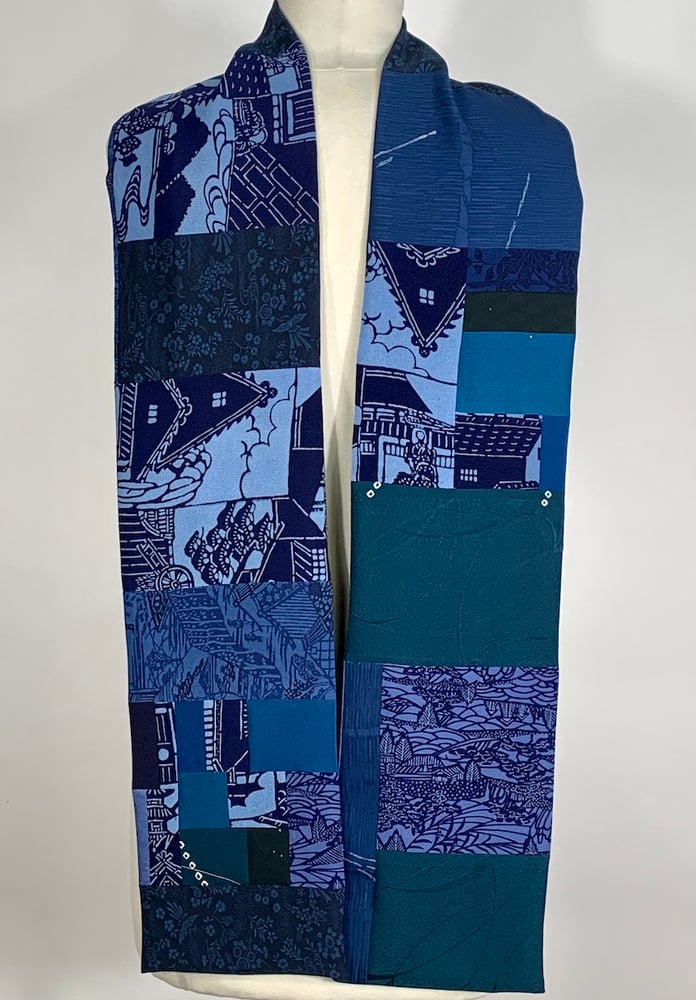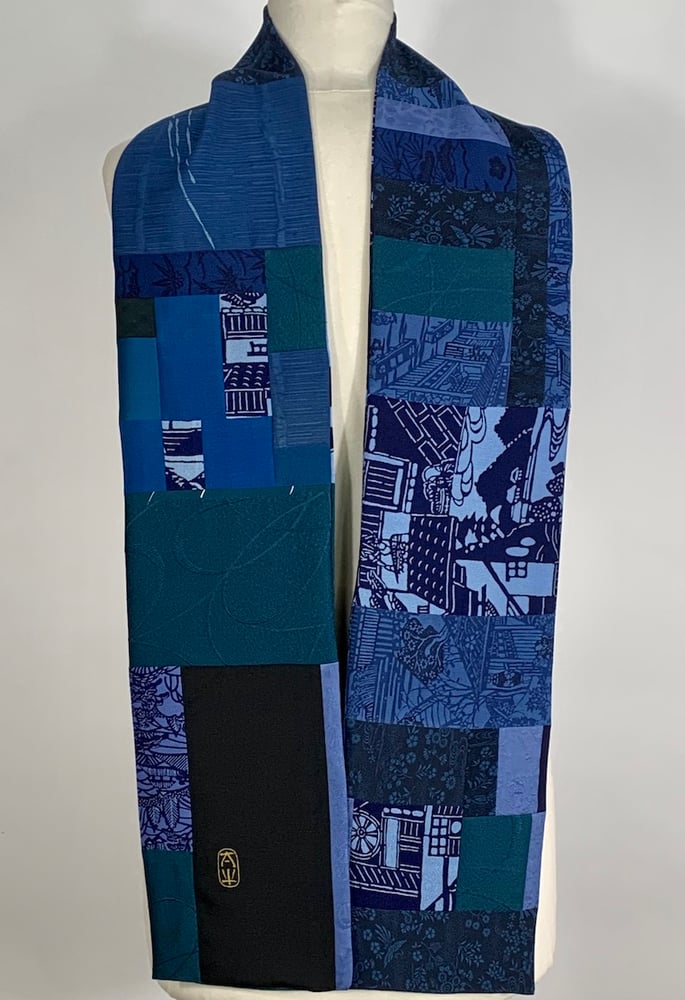 All pieces are hand made one at a time in my Portland, Oregon studio. Most fabrics are vintage Japanese silks. These very special fabrics were woven, stenciled, tie-dyed and painted by Japanese artisans. Many were still in the bolt on their way to become kimonos. Others had been sewn into kimonos but were no longer wearable. I remove the hand stitching, wash and prepare the fabrics for their new life. Each piece I make is unique, most are one of a kind. I ship USPS priority at the beginning of the week.