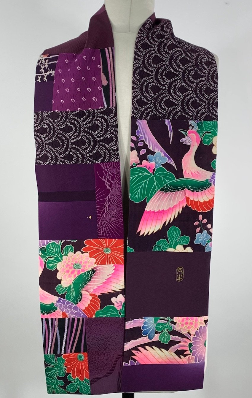 All silks are vintage. They were originally painted, stenciled, woven or dyed to be used for kimonos. Some were never used and have been in storage, others are from old kimonos.