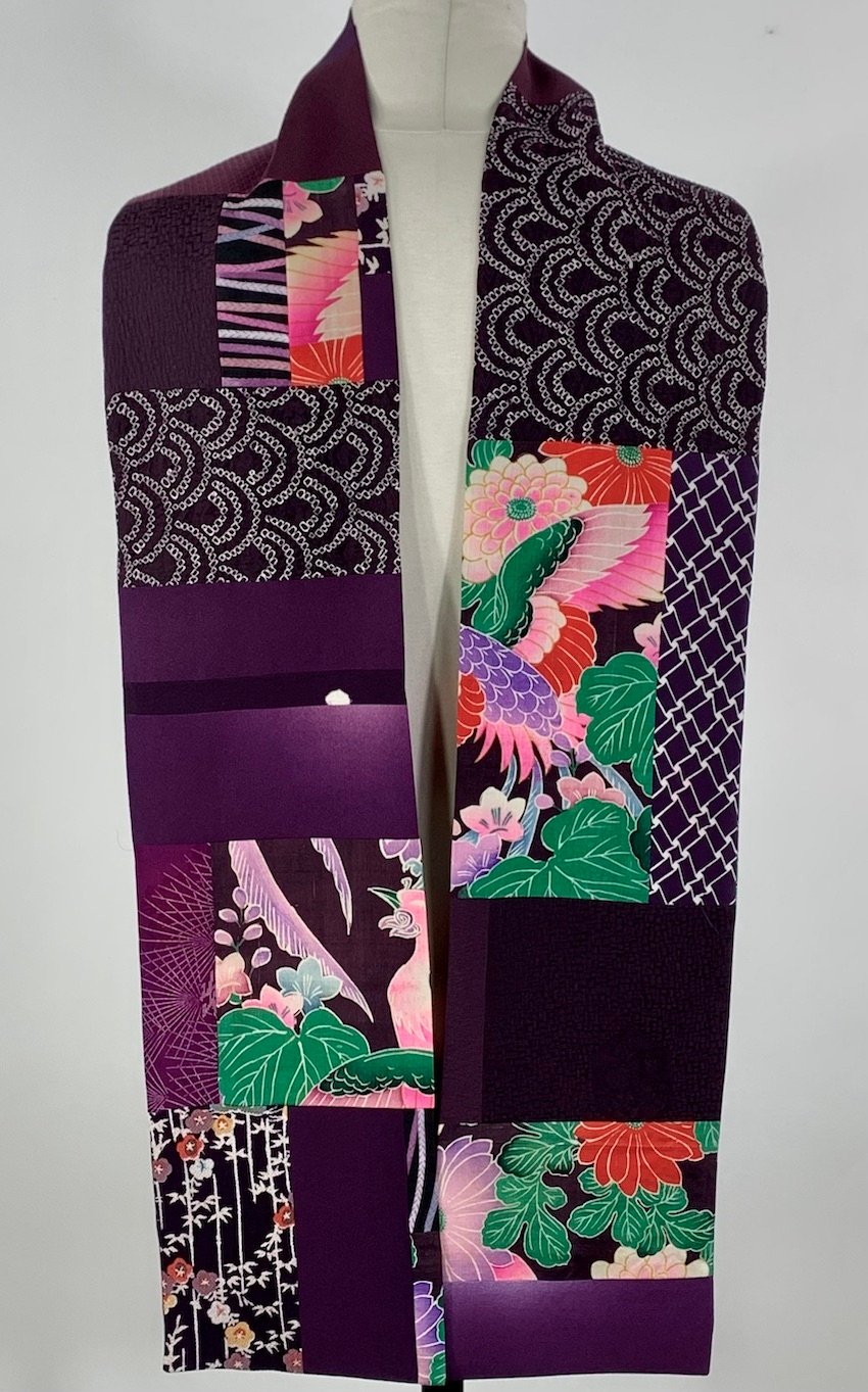 All pieces are hand made one at a time in my Portland, Oregon studio. Most fabrics are vintage Japanese silks. These very special fabrics were woven, stenciled, tie-dyed and painted by Japanese artisans. Many were still in the bolt on their way to become kimonos. Others had been sewn into kimonos but were no longer wearable. I remove the hand stitching, wash and prepare the fabrics for their new life. Each piece I make is unique, most are one of a kind. I ship USPS priority at the beginning of the week.