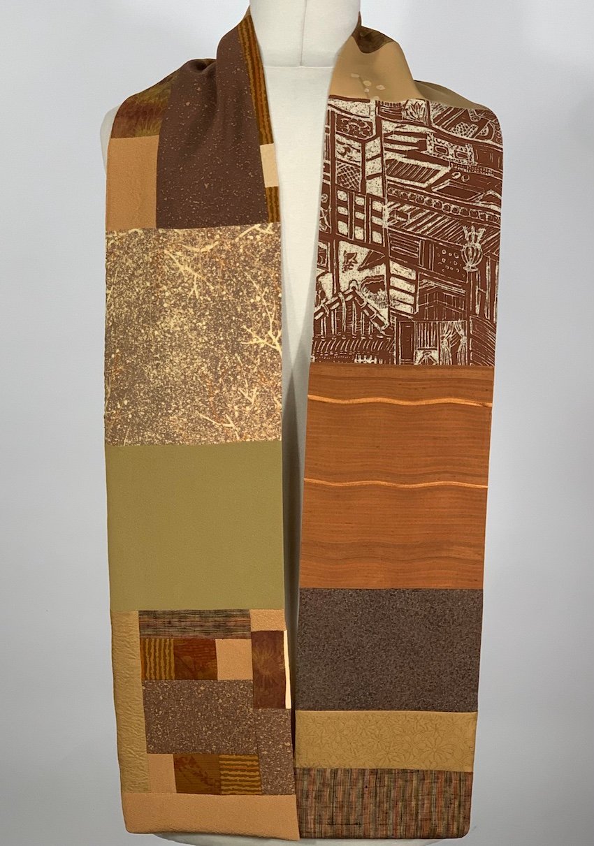 All pieces are hand made one at a time in my Portland, Oregon studio. Most fabrics are vintage Japanese silks. These very special fabrics were woven, stenciled, tie-dyed and painted by Japanese artisans. Many were still in the bolt on their way to become kimonos. Others had been sewn into kimonos but were no longer wearable. I remove the hand stitching, wash and prepare the fabrics for their new life. Each piece I make is unique, most are one of a kind. I ship USPS priority at the beginning of the week.