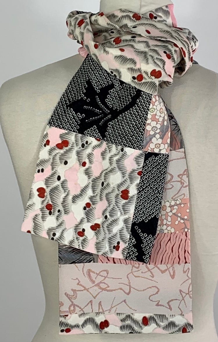 Pieced, vintage, Japanese kimono silk scarf.