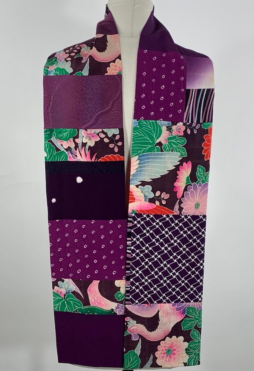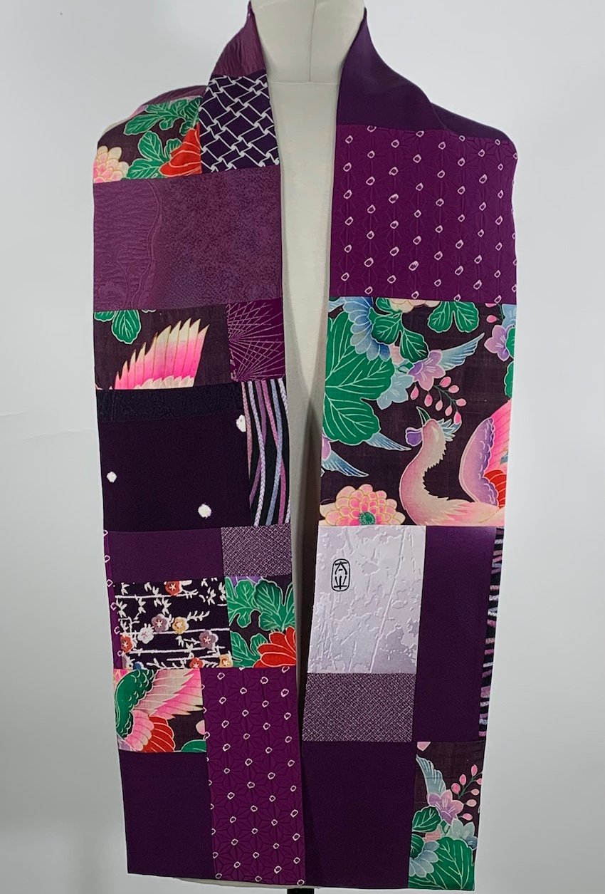 Pieced, vintage, Japanese kimono silk scarf.
