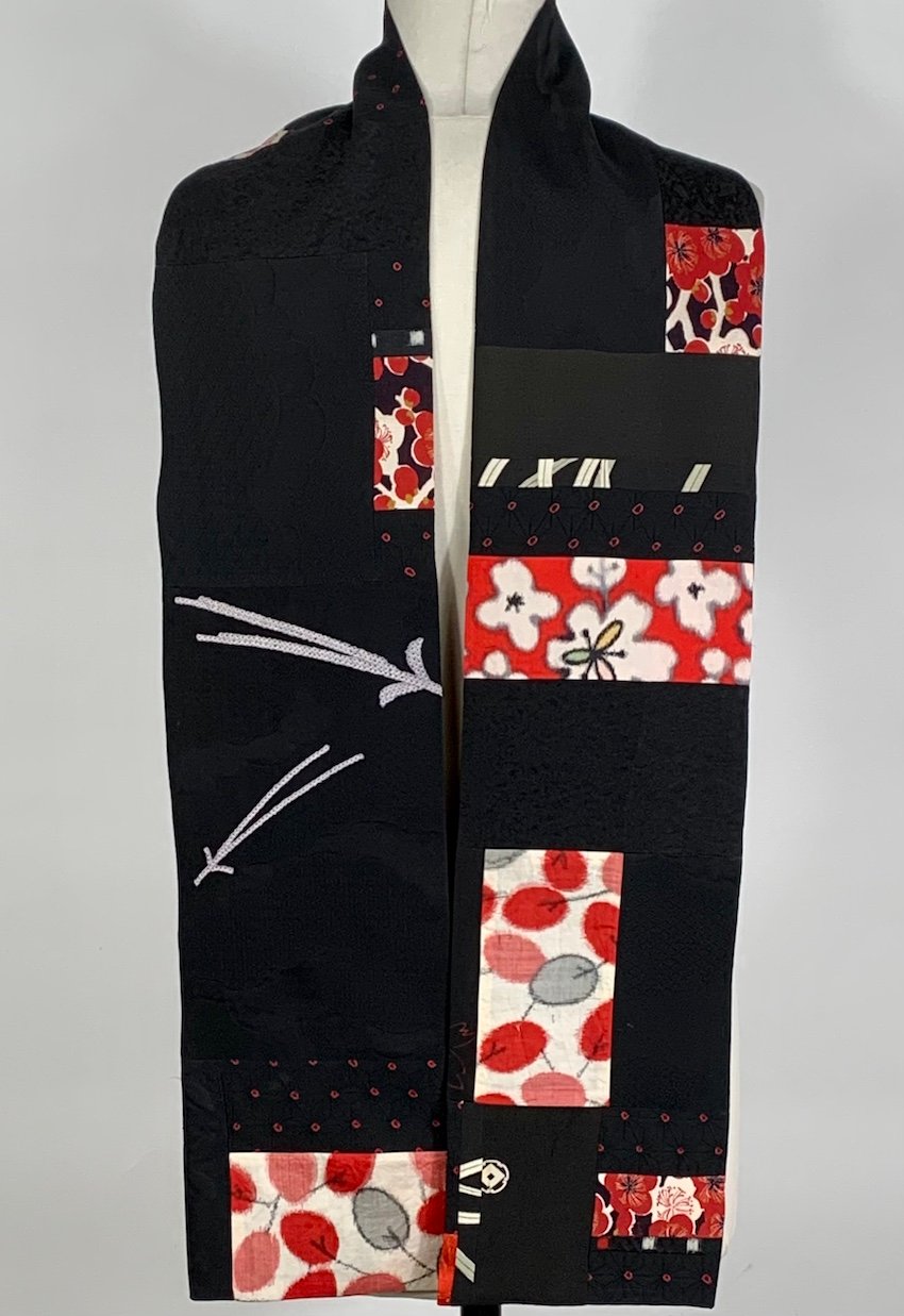 All pieces are hand made one at a time in my Portland, Oregon studio. Most fabrics are vintage Japanese silks. These very special fabrics were woven, stenciled, tie-dyed and painted by Japanese artisans. Many were still in the bolt on their way to become kimonos. Others had been sewn into kimonos but were no longer wearable. I remove the hand stitching, wash and prepare the fabrics for their new life. Each piece I make is unique, most are one of a kind. I ship USPS priority at the beginning of the week.
