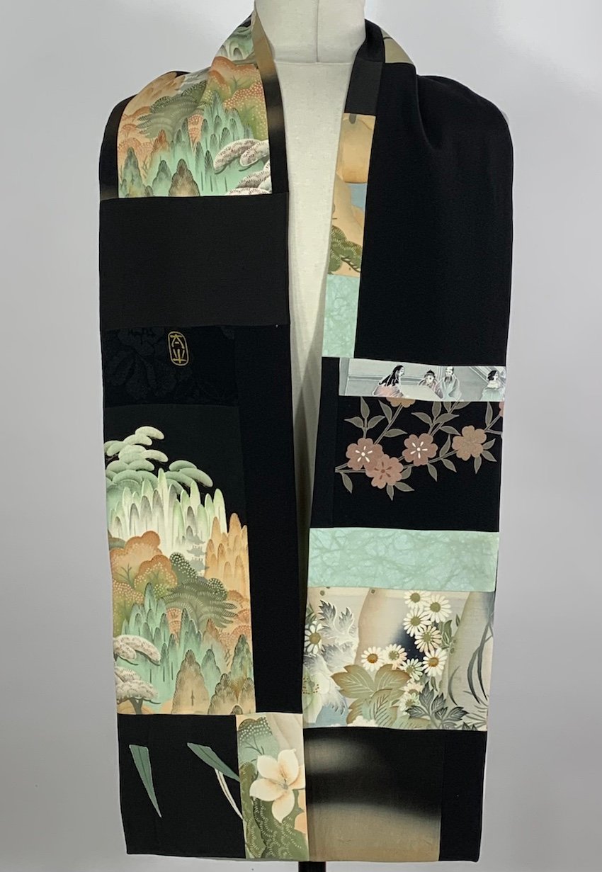 Pieced, vintage, Japanese kimono silk scarf.