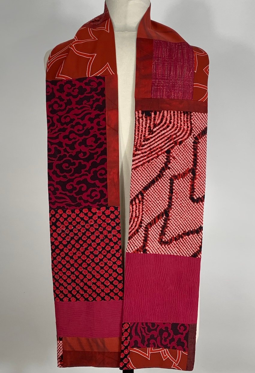All pieces are hand made one at a time in my Portland, Oregon studio. Most fabrics are vintage Japanese silks. These very special fabrics were woven, stenciled, tie-dyed and painted by Japanese artisans. Many were still in the bolt on their way to become kimonos. Others had been sewn into kimonos but were no longer wearable. I remove the hand stitching, wash and prepare the fabrics for their new life. Each piece I make is unique, most are one of a kind. I ship USPS priority at the beginning of the week.